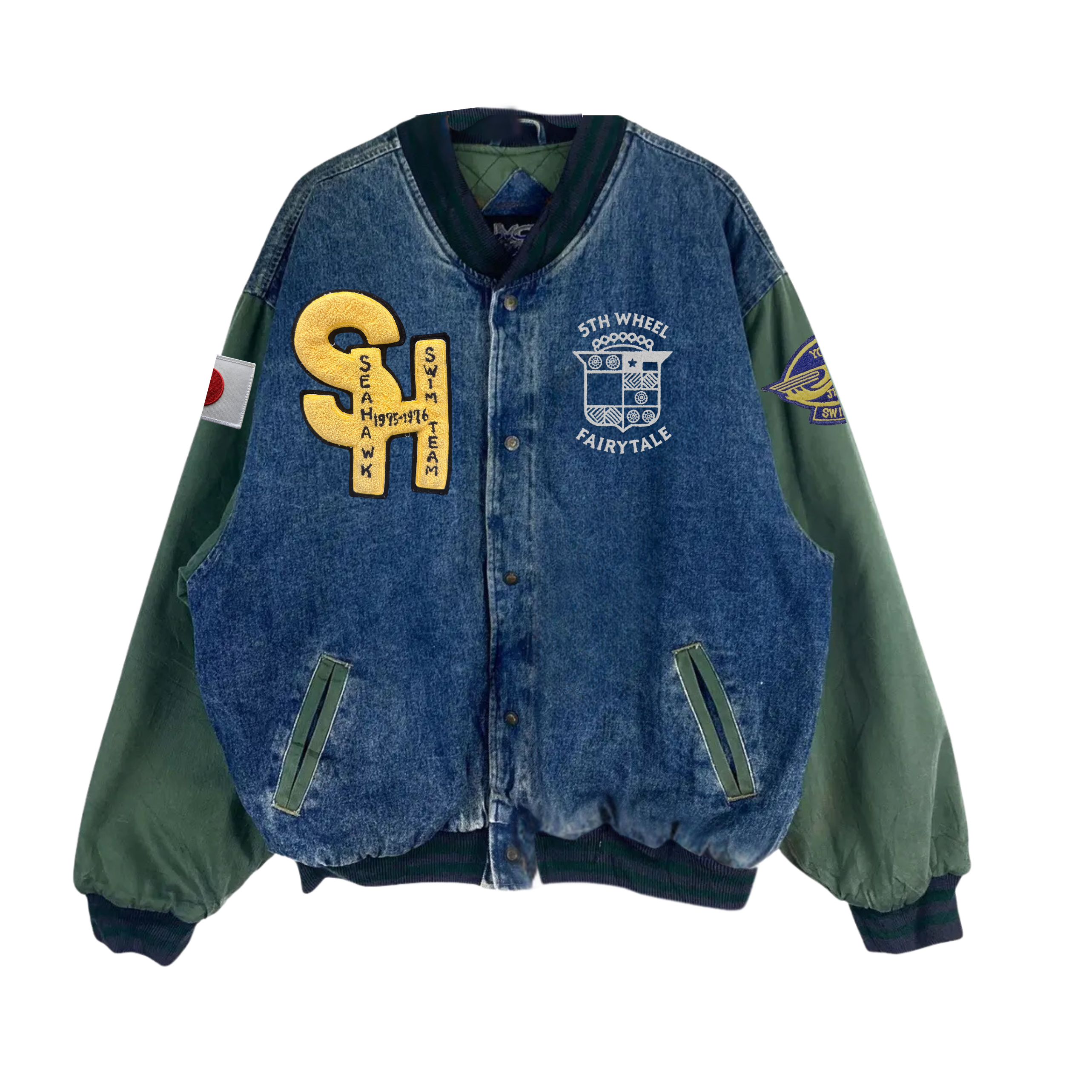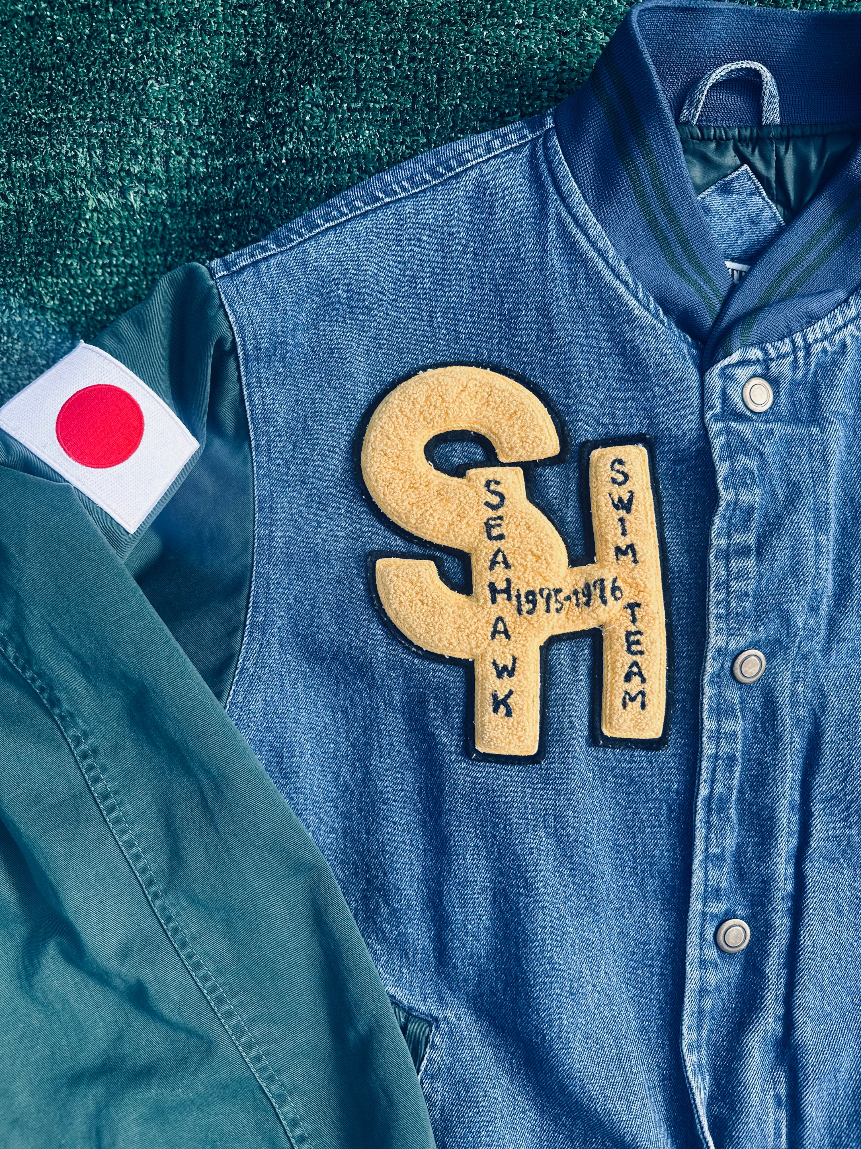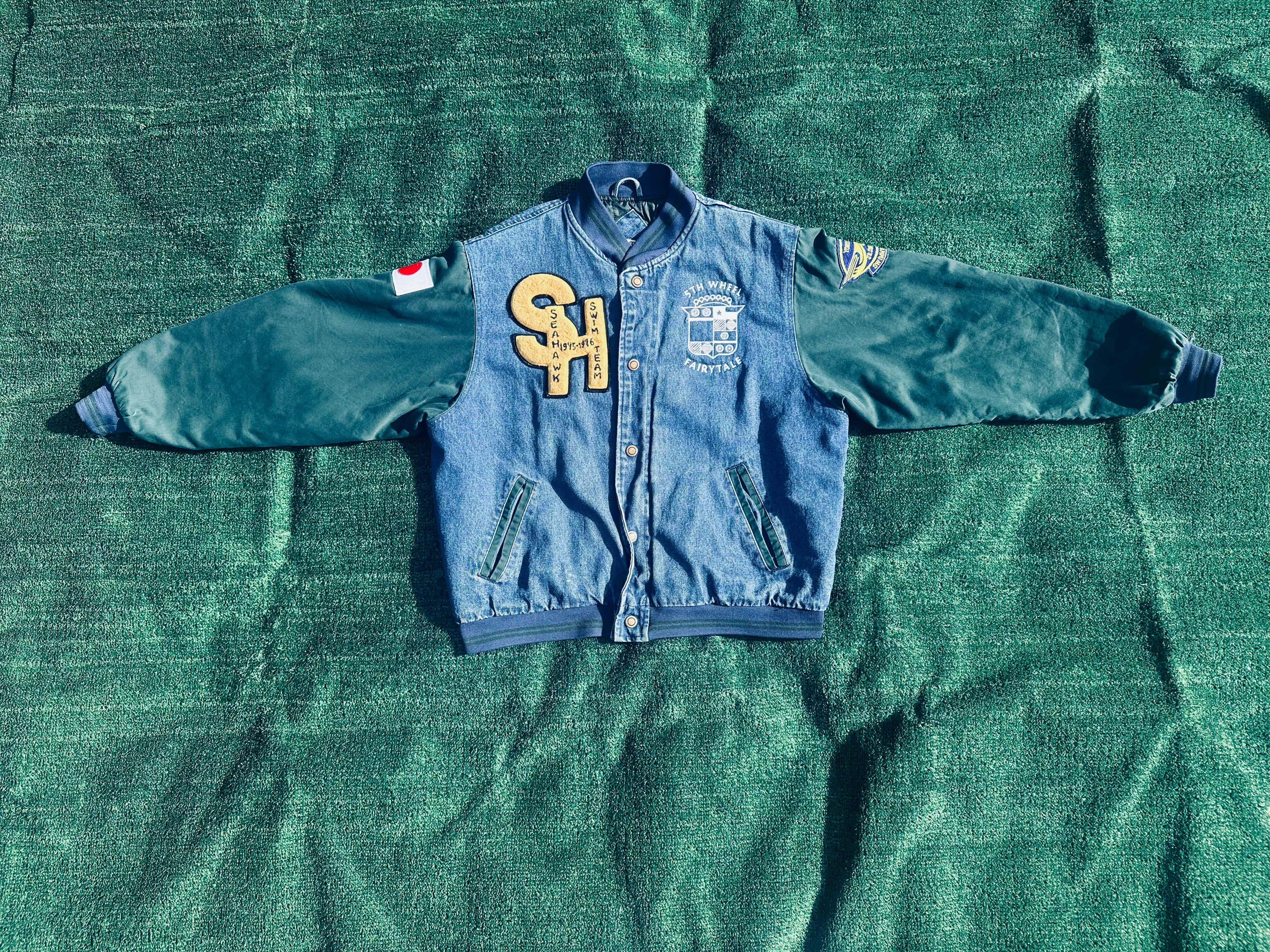 FWCC. Vintage Yokosuka Seahawks High School Denim letterman Jacket