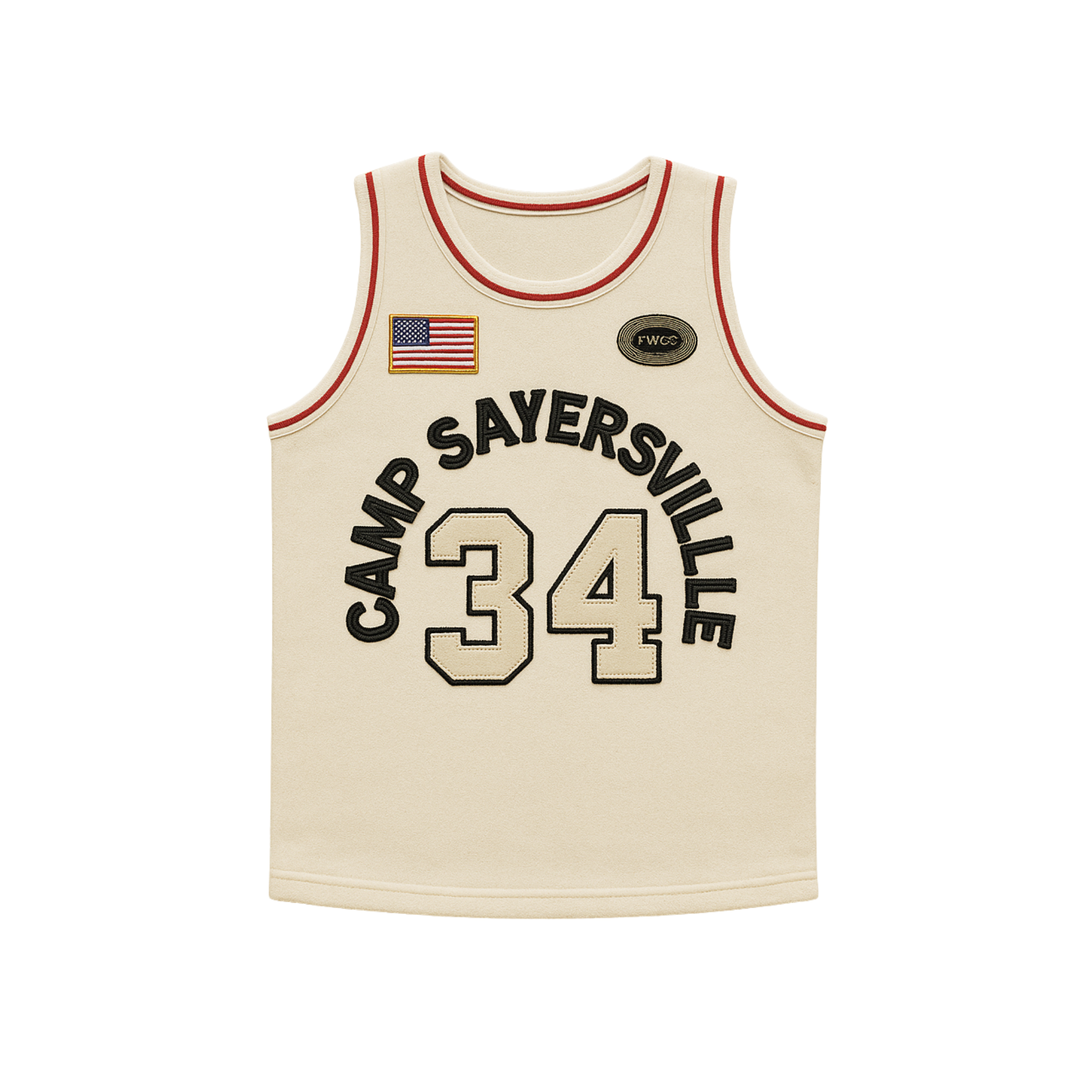 The Away Game Edition of the iconic Camp Sayersville Cougars #34 jersey captures the same historic energy that defined Swoosh Abdul-Jabbar’s freshman season in 1996. In a clean cream tone with bold black lettering and classic red trim, this jersey was worn as the Cougars battled rival teams on the road — ultimately securing a state championship and cementing Swoosh as the #1 high school player in the nation.